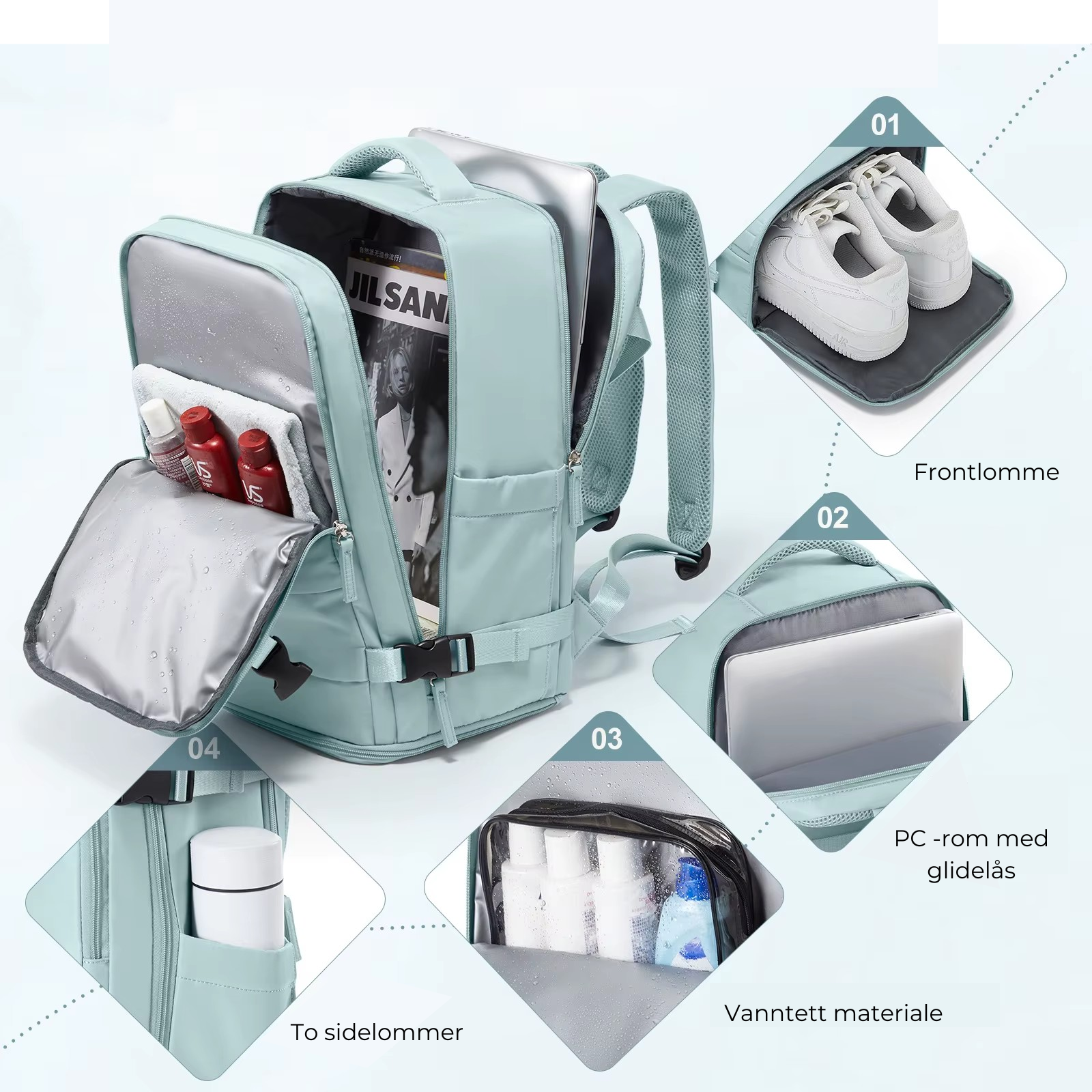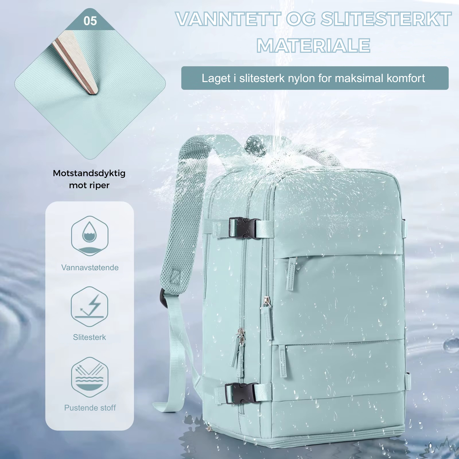 Reiseryggsekken er designet for deg som vil ha en smart og allsidig løsning på tur. Med egne rom til sko, laptop og toalettsaker holder du alt organisert og lett tilgjengelig. Det slitesterke, vanntette materialet beskytter innholdet, mens det ergonomiske designet gjør sekken behagelig å bære hele dagen.